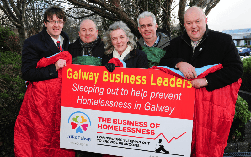 The COPE Galway Business Leaders’ Sleep Out began in 2012, when a small group of Galway business leaders came together in response to the growing homelessness crisis in the city.
